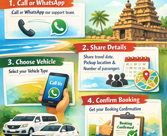 Perfect for weekend getaways and short family outings. Travel to Mahabalipuram and return to Chennai on the same day with safe driving, well-maintained vehicles, and on-time service.