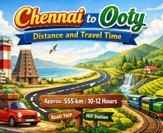 Ooty, also known as the “Queen of Hill Stations,” is located in the Nilgiri Hills of Tamil Nadu. The distance from Chennai to Ooty is approximately 550 km, and the travel time usually takes 10 to 12 hours depending on traffic and route conditions.